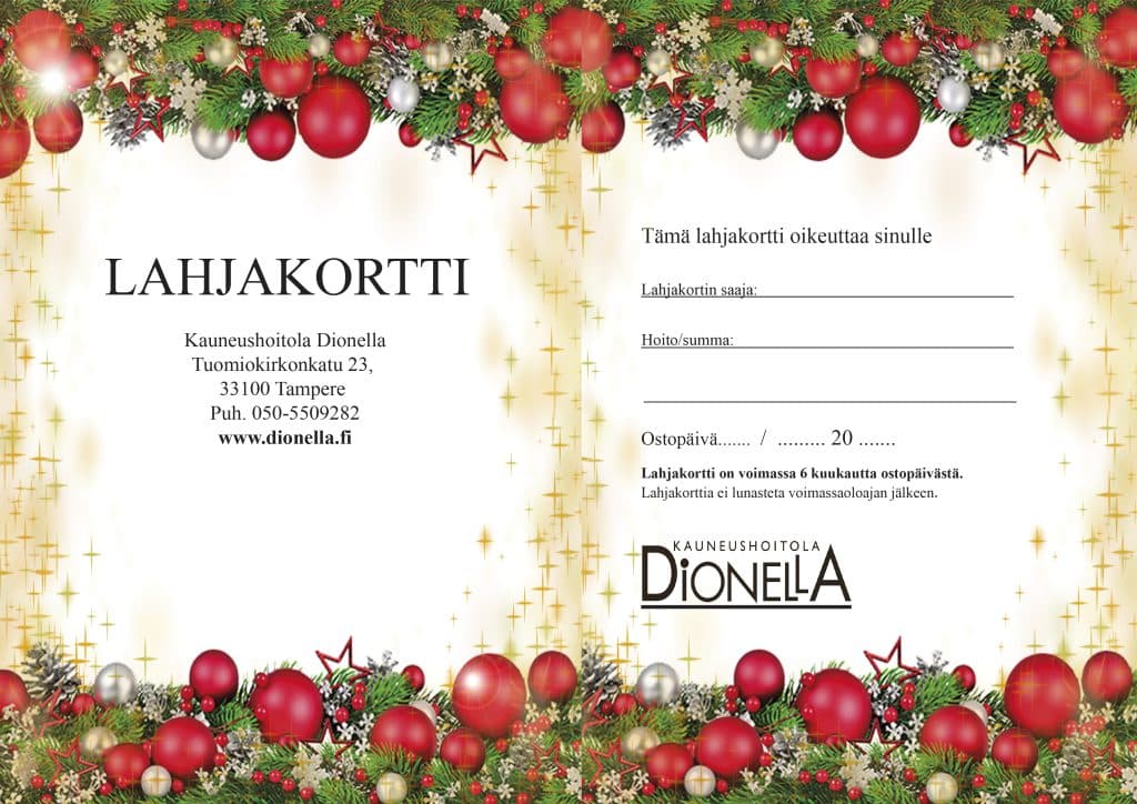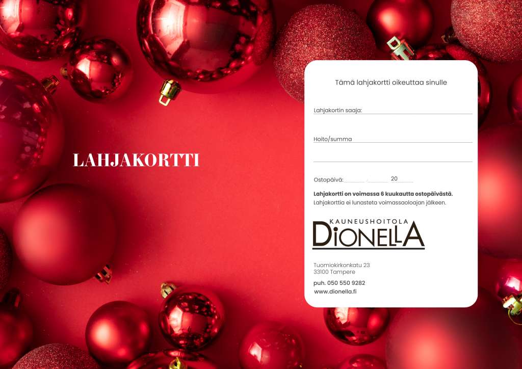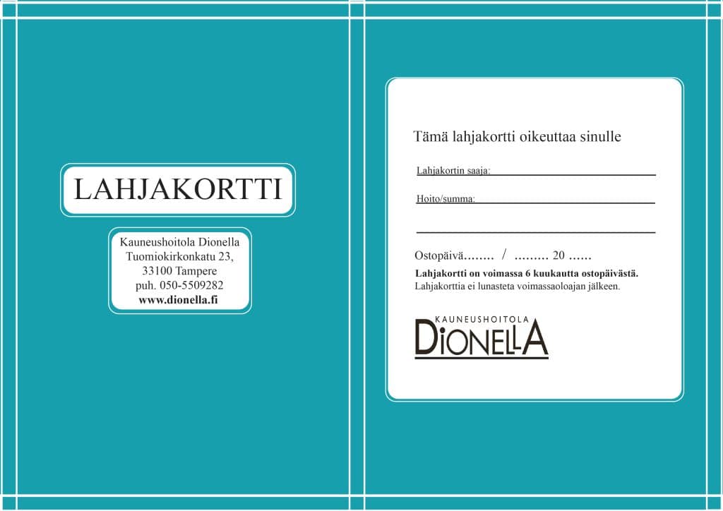 Lahjakortin voit hankkia: noutamalla sen hoitolasta, tai tilaamalla sen puhelimitse, jolloin saat sen postitse, tai ostamalla ja tulostamalla lahjakortin tästä nyt heti.
